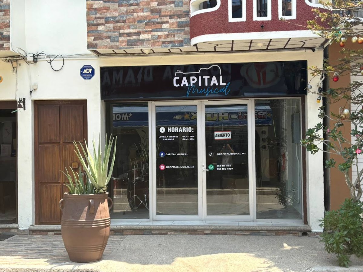 Capital musical — Escuela De Música Ubicado en Bahías de Huatulco. Horario: lunes: 10:00–19:00; martes: 10:00–19:00; miércoles: 10:00–19:00; jueves: 10:00–19:00; viernes: 10:00–19:00; sábado: 10:00–15:00; domingo: Cerrado