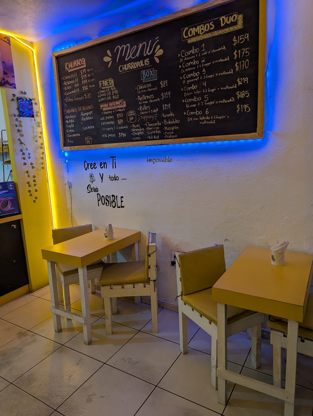 Churropolis es un encantador café situado en la Avenida Venustiano Carranza en Sta Bárbara, Colima. Este establecimiento único es el lugar perfecto para los amantes del café y los entusiastas de los postres, ofreciendo una selección especial de churros y bebidas que satisfacen cualquier antojo dulce. Con un ambiente acogedor, es el lugar ideal para relajarse y disfrutar de un capricho con amigos o familiares. Ya sea que busques un bocadillo rápido o una tarde tranquila, Churropolis ofrece una experiencia cálida y acogedora para todos sus visitantes.