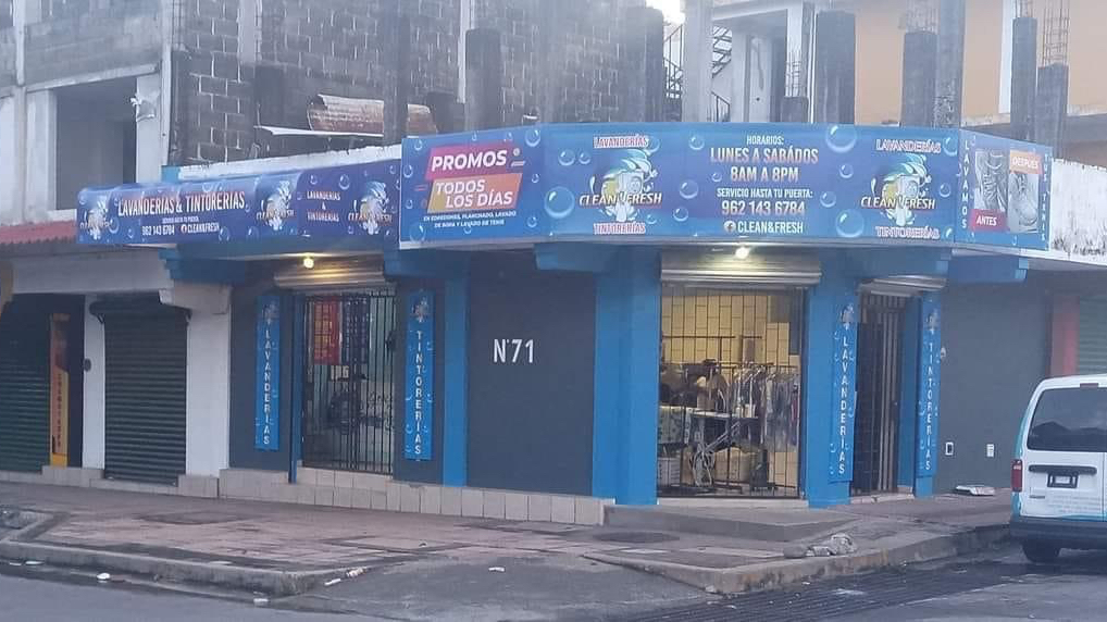 Clean & Fresh — Lavandería Ubicado en Tapachula de Córdova y Ordóñez. Horario: lunes: 8:00–20:00; martes: 8:00–20:00; miércoles: 8:00–20:00; jueves: 8:00–20:00; viernes: 8:00–20:30; sábado: 8:00–20:00; domingo: Cerrado | Calificación: 4 (26 opiniones) Sitio web: https://www.facebook.com/Cleanfreshtap/