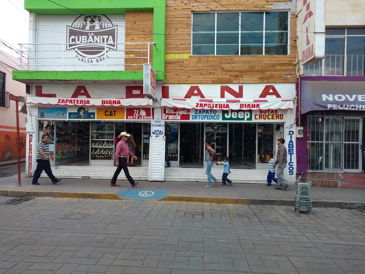 Zapateria Diana de Fresnillo — Zapatería Ubicado en Fresnillo. Horario: lunes: 9:00–19:00; martes: 9:00–19:00; miércoles: 9:00–19:00; jueves: 9:00–19:00; viernes: 9:00–19:00; sábado: 9:00–19:00; domingo: 9:00–19:00 | Calificación: 4.5 (64 opiniones)